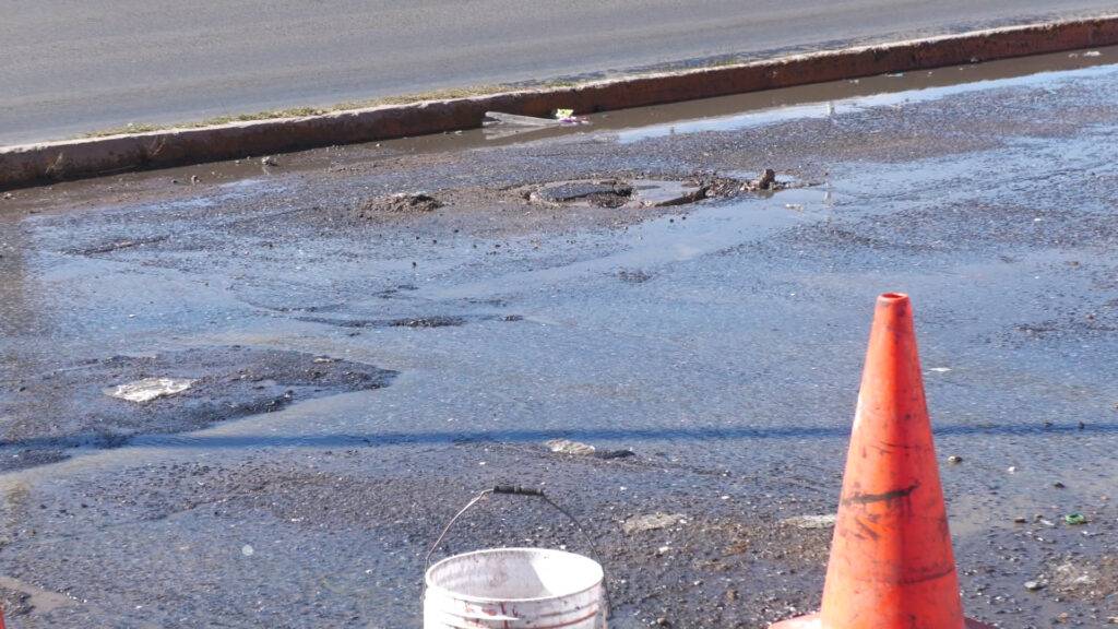 En la colonia Lomas de Plateros, municipio de Fresnillo, se reportó una grave fuga de aguas residuales que ha afectado la circulación vehicular en la calle Francisco Villa.