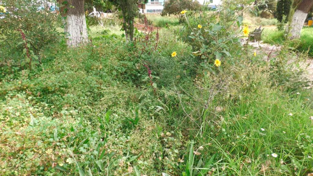 La falta de mantenimiento en el Parque La Lagunilla de Fresnillo ha generado un crecimiento desmedido de maleza, alcanzando una altura considerable debido a las recientes lluvias en la región.