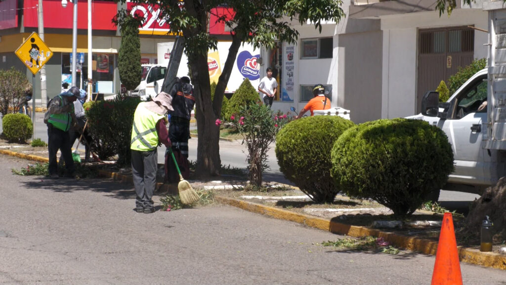 El personal realizó labores de poda de árboles, retiro de maleza y recolección de basura en los camellones, con el objetivo de mejorar la imagen urbana y brindar un entorno más limpio y seguro.