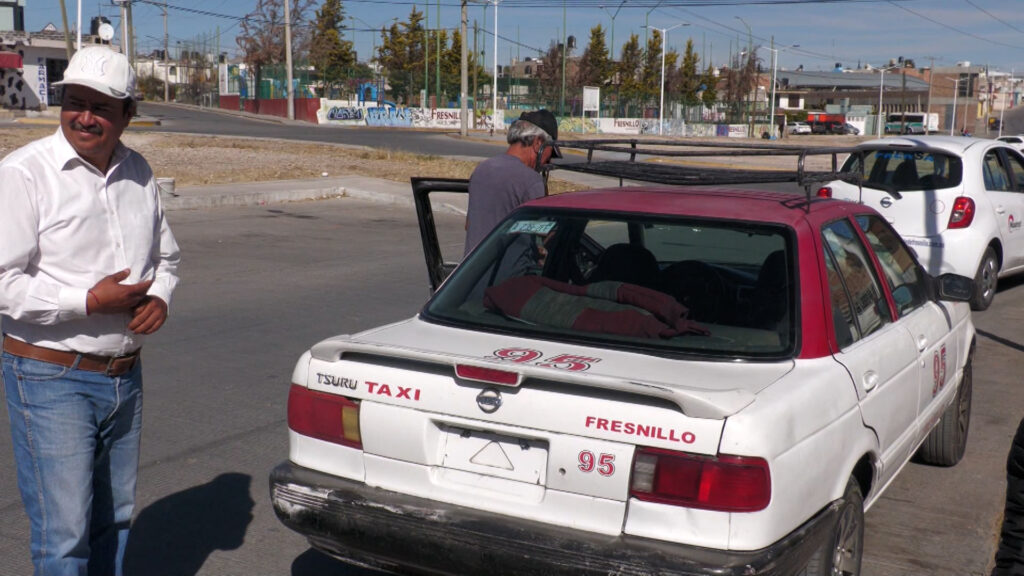 Los taxistas de la base de Los Balcones en Fresnillo han visto una drástica reducción en su demanda de servicio debido al auge de aplicaciones de transporte como Uber.