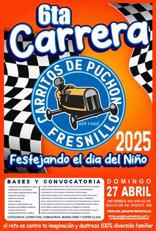 Después de un largo parón debido a la pandemia, las tradicionales carreras de carritos de puchón regresan a Fresnillo este 27 de abril para celebrar el Día del Niño. El evento, que se llevará a cabo en el Pentatlón de la salida Zacatecas, se ha convertido en una de las actividades favoritas para la familia, especialmente para los más pequeños.