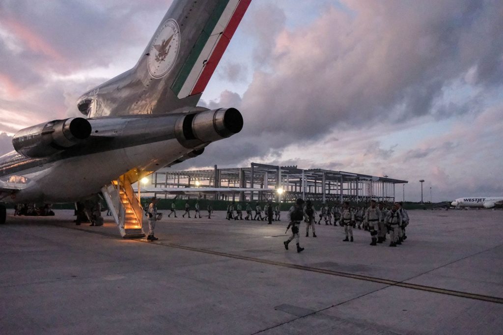Desde las 6:00 horas, 990 agentes de la Guardia Nacional (GN) partieron desde el sur del país hacia Tijuana (Baja California), Sonoyta (Sonora) y Matamoros (Tamaulipas) en aviones militares.