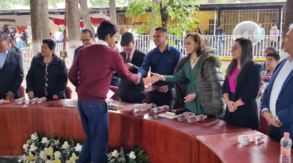 Durante la ceremonia de cierre de ciclo y graduación de la Escuela Técnica No. 8, el profesor Macario Contreras Meléndez recibió un honorable reconocimiento por sus 30 años de labor docente, de parte de la jefa de la Región Educativa 11 Federal, la Maestra Nancy Aguilera Lazalde.