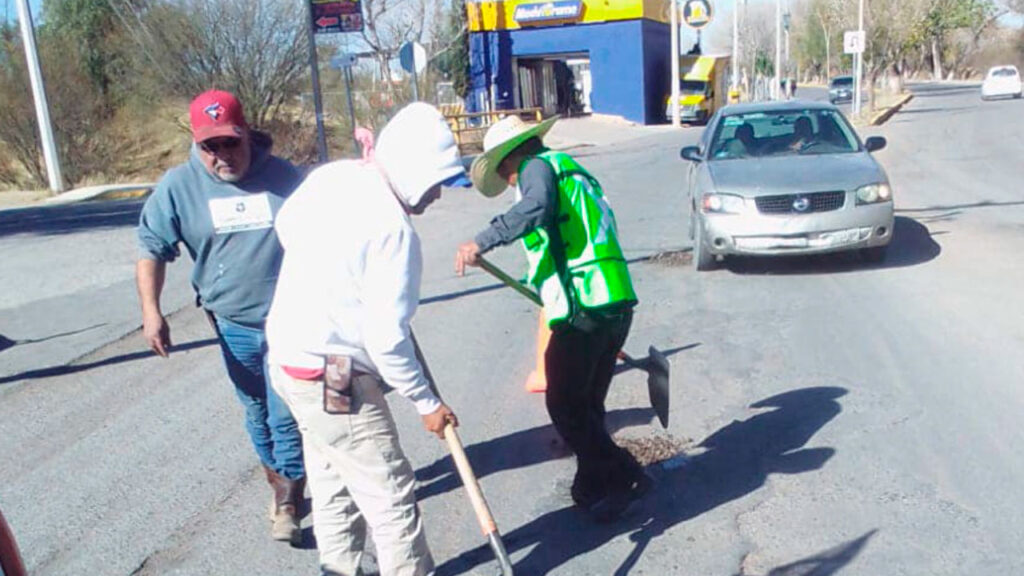 Las labores de bacheo abarcaron, además, la avenida Arturo Castillo, desde el entronque con la carretera federal hasta la salida norte hacia el CBTa, una zona de gran afluencia vehicular, donde el mal estado de la vía representaba un peligro para los conductores.