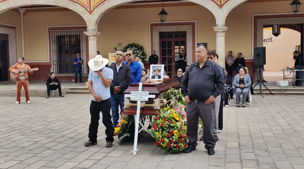 El acto fue acompañado por directores y jefes de departamento, quienes rindieron homenaje luctuoso en el atrio de la presidencia municipal. Lilia Eugenia Segovia Bañales brindó un emotivo mensaje de condolencias a la esposa y familia del difunto.